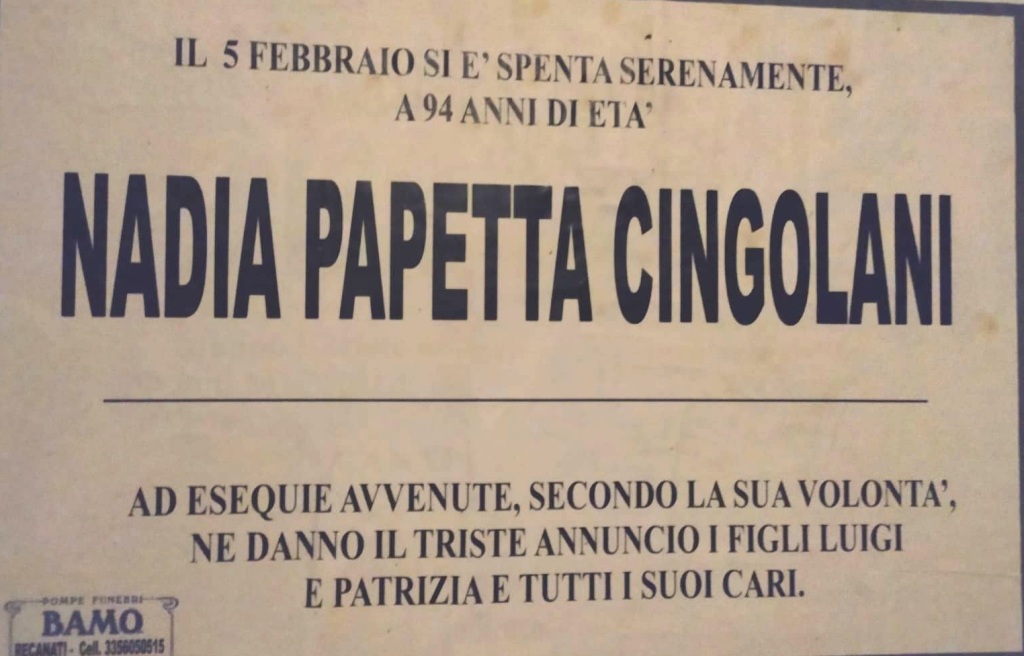 Next Article E’ morta Naide Papetta ved. Cingolani
