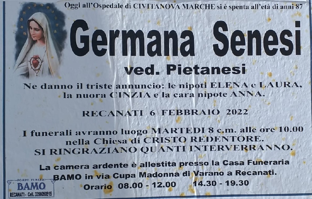 Home » E’ morta Germana Senesi ved. Pietanesi