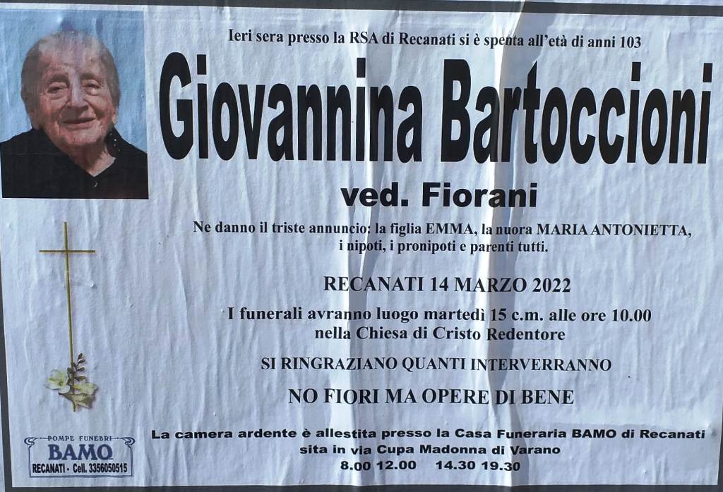 E’ morta Giovannina Bartoccioni ved. Fiorani