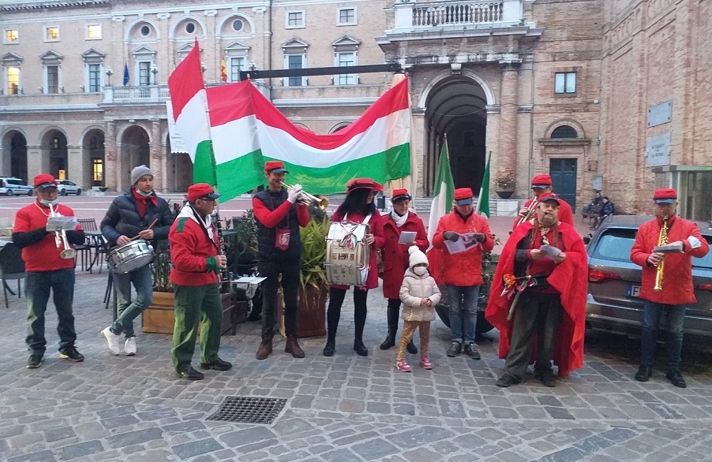 Non è mancato quest’anno (a differenza degli ultimi due a causa del Covid) l’omaggio musicale de “Le Ciuette garibaldine” di Recanati per ricordare il 161° anniversario dell’Unità d’Italia che celebra la nascita dello Stato italiano, avvenuta in seguito alla proclamazione del Regno d’Italia del 17 marzo 1861 a Torino.