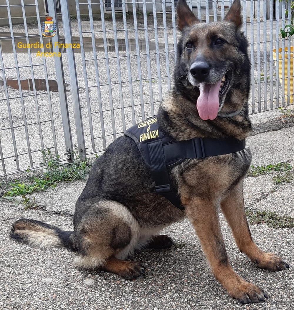 Il soggetto controllato, di nazionalità ellenica, all’atto del controllo riferiva di non avere nulla da dichiarare. Gli operanti, non ritenendo attendibili le risposte fornite e insospettiti dal comportamento del soggetto, hanno deciso di effettuare un controllo più accurato approfittando della disponibilità di un preziosissimo alleato, il cane di nome Isabel, l’ultimo esemplare di pastore tedesco entrato a far parte delle unità cinofile della Guardia di Finanza di Ancona. Il cane Isabel è un “CASH DOG”, un cane addestrato alla ricerca di valuta, capace di fiutare l’odore delle banconote che potrebbero essere state occultate, ad esempio, all’interno di in un bagaglio o a bordo di una autovettura, costituendo in tal modo un preziosissimo ausilio nell’ambito delle attività svolte all’interno dello scalo dorico.