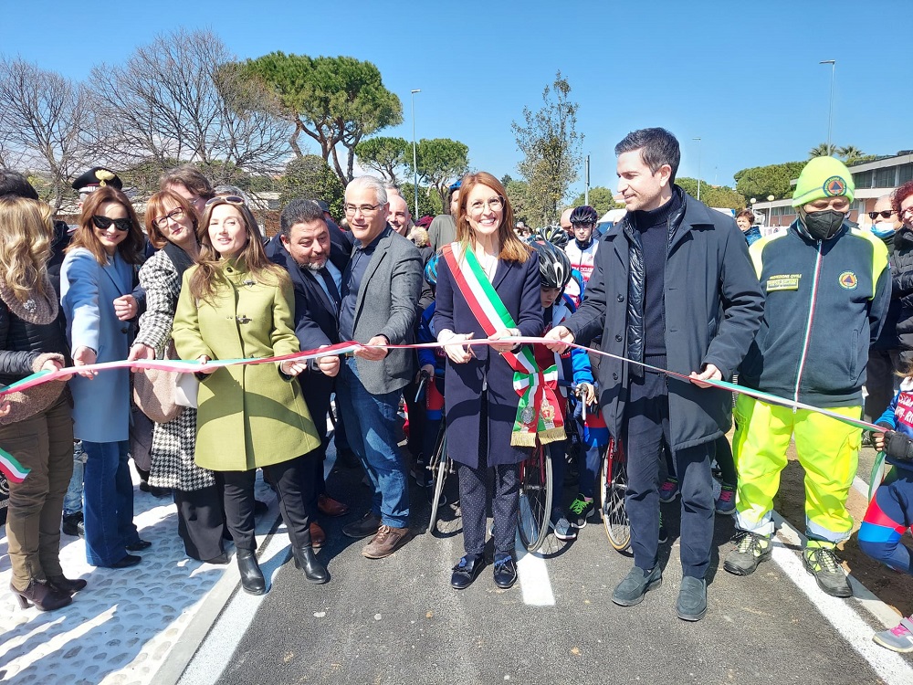 Sono stati i bambini della Scuola di Ciclismo Potentia Rinascita, con le loro divise rosso blu, ad inondare di entusiasmo la nuova pista ciclabile di Porto Potenza Picena, inaugurata questa mattina (domenica 20 marzo 2022, ndr) con la partecipazione di tanti cittadini che hanno voluto salutare sulle due ruote la nuova opera. Tra le autorità che hanno preso parte al taglio del nastro, oltre ai rappresentanti della giunta comunale, anche il presidente della Regione Marche, Francesco Acquaroli, i consiglieri regionali, Elena Leonardi e Pierpaolo Borroni e il comandante della stazione dei carabinieri di Porto Potenza Picena, Alessio Alberigo.