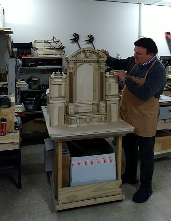 Prima faccio una foto dell’originale che voglio riprodurre e poi mi faccio un disegno da 1:10 e inizio a lavorare.” A dare l’ultimo tocco di rifinitura con lenzuola, tovaglie, pizzetti e quant’altro ci pensa la moglie Anna con ago, filo, ricamo, ferri o uncinetto. La sua ultima opera è la riproduzione del coro ligneo della cattedrale di San Flaviano, un lavoro del ‘600 progettato ed eseguito dal falegname Agostilio Vangelisti di Ripatransone. “Dopo aver chiesto il permesso al parroco, ho fotografato e preso le misure ad ogni stato di avanzamento dei lavori, svolti in varie fasi e durato sei mesi. Ora ho appena ultimato l’altare della chiesa dei cappuccini. Per ora non ho niente altro in programma, mi lascio ispirare dalla curiosità, ultimamente mi attirano molto le cose particolarmente lavorate con capitelli, cornici, elementi decorativi vari”.