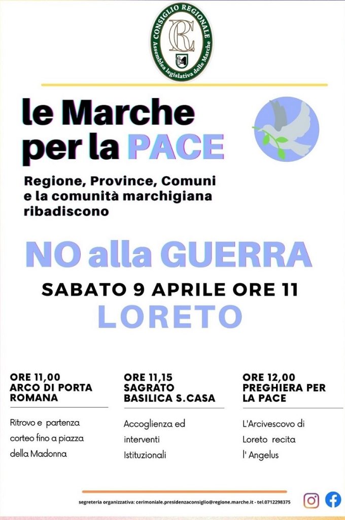 Ricordando il dettato costituzionale che “consacra il ripudio della guerra come forma di risoluzione dei conflitti tra i popoli” , il Presidente del Consiglio regionale, Dino Latini, evidenzia che “la nostra vuole essere un’iniziativa simbolica attorno alla quale aggregare il pensiero di pace di tutte le Marche”.