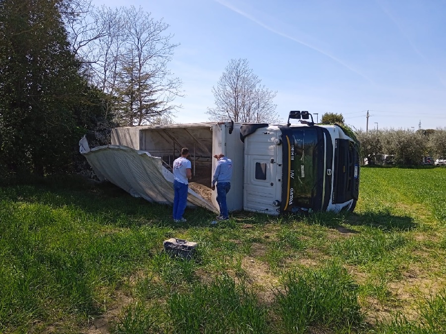 Un camion finisce fuori strada in contrada Chiarino all’altezza dell’Oleificio Bartolini, e dopo aver abbattuto due piante si è ribaltato su di un fianco in un campo. L’incidente, avvenuto oggi pomeriggio all’incirca verso le ore 14, non ha coinvolto altri mezzi in transito e i due autisti che erano sul grosso mezzo non hanno riportato ferite tanto che non è stato necessario il soccorso dei sanitari.