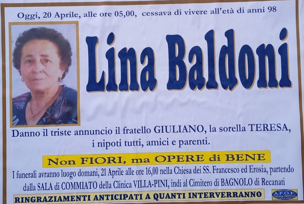E’ morta Lina Baldoni