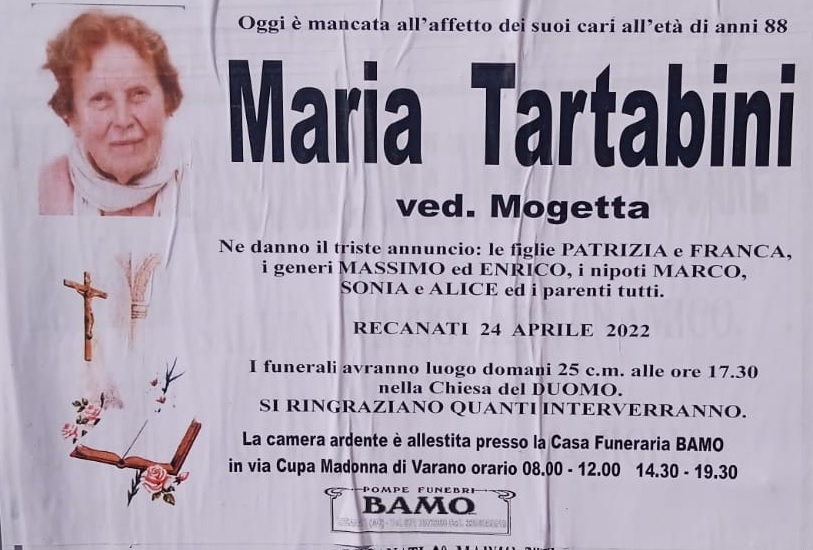 Home » E’ morta Maria Tartabini ved. Mogetta