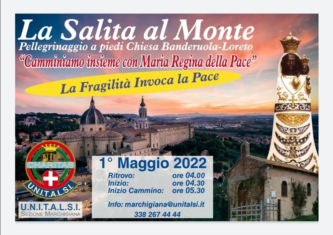 L’ associazione U.N.I.T.A.L.S.I Marche,.(Unione Nazionale Italiana Trasporto Ammalati Santuari Internazionali) dopo vari anni di stop il nostro Presidente regionale Massimo Graciotti e Soci organizza un Pellegrinaggio al Santuario Mariano di Loreto il 1 Maggio 2022, partenza alla chiesetta la Banderuola zona Scossicci di Porto Recanati.