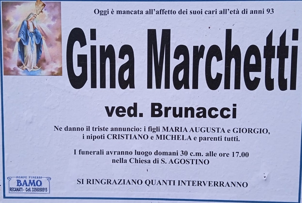 Home » E’ morta Gina Marchetti ved. Brunacci