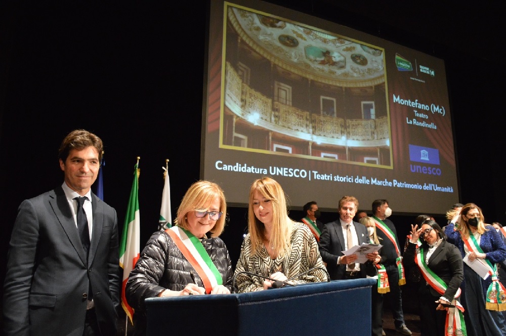 La Regione Marche ha firmato ieri il Protocollo d’Intesa con i 60 Comuni marchigiani coinvolti nella bellissima iniziativa di inserimento dei Teatri Storici delle Marche nella lista dei Beni del Patrimonio Mondiale UNESCO. Il nostro meraviglioso gioiello, il Teatro La Rondinella, è stato inserito all’interno del Progetto, offrendo così a Montefano un’ulteriore possibilità di crescita e visibilità a livello nazionale ed internazionale.