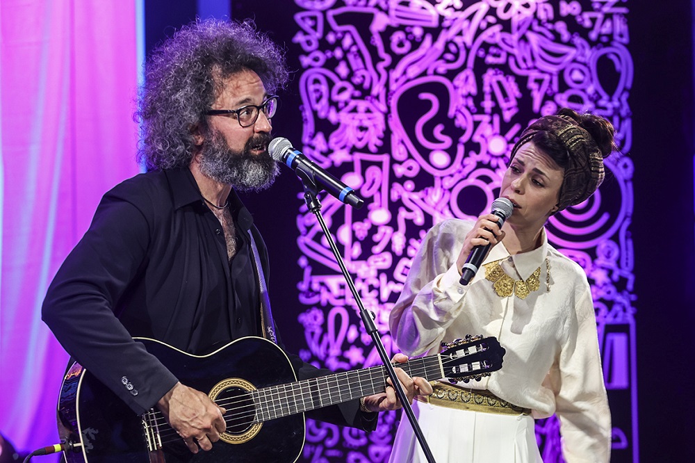 Un inedito ed emozionante duetto di Simone Cristicchi e Amara ha incantato il pubblico con “Le poche cose che contano” uno dei primi brani scritti insieme e per la prima volta cantato dal vivo in un teatro.