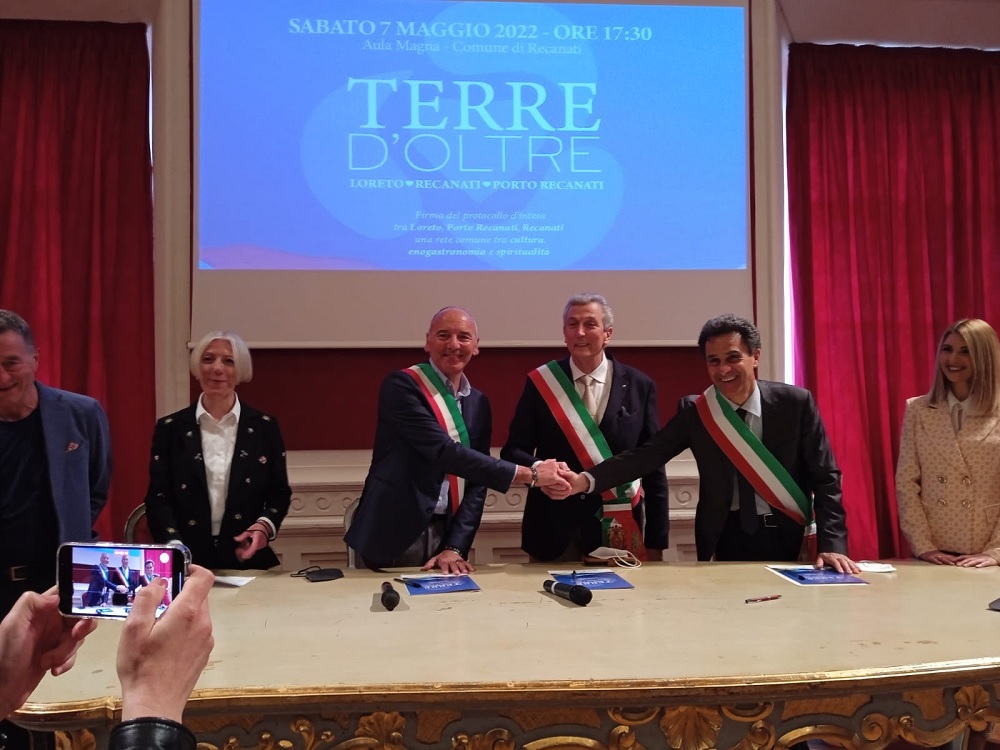 Al via “Terre d’oltre” una rete tra cultura, enogastronomia e spiritualità tra i Comuni di Loreto, Recanati e Porto Recanati con la firma del Protocollo d’intesa tra i Sindaci delle tre città per la promozione sinergica del territorio.
