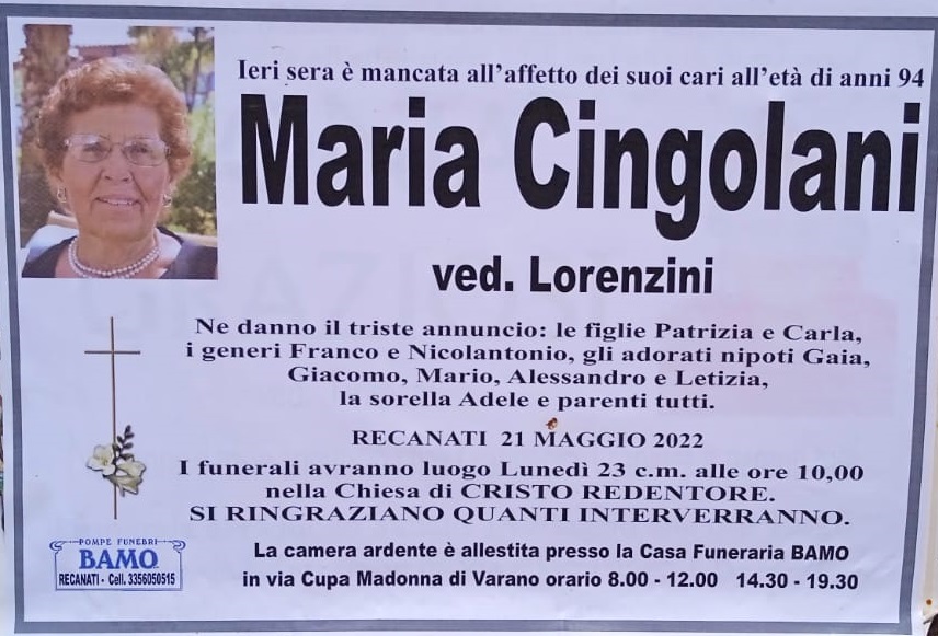 Home » E’ morta Maria Cingolani ved. Lorenzini