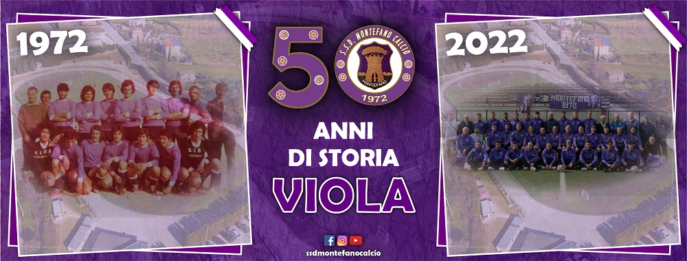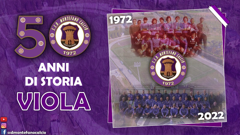 “Il Montefano Calcio festeggia il suo 50° anno di attività! La società viola ha infatti raggiunto nel 2022 mezzo secolo di storia. Un percorso partito da lontano, dal 1972, per il piccolo paese del maceratese che anno dopo anno con passione, competenza e sacrifici è riuscito a raggiungere questo importante traguardo. Dalla Terza Categoria all’Eccellenza con in mezzo tanti campionati, tante storie, promozioni e retrocessioni. A servizio della squadra viola di Montefano sono passati tanti presidenti, giocatori, allenatori, dirigenti, addetti ai lavori ecc. È con tutti loro, con i simpatizzanti e gli appassionati di questo sport che il Montefano vuole condividere un momento di festa e ricordi. La società dell’attuale presidente Stefano Bonacci ha organizzato una serie di eventi e iniziative per celebrare questo che è solo un punto di passaggio nella storia del Montefano.