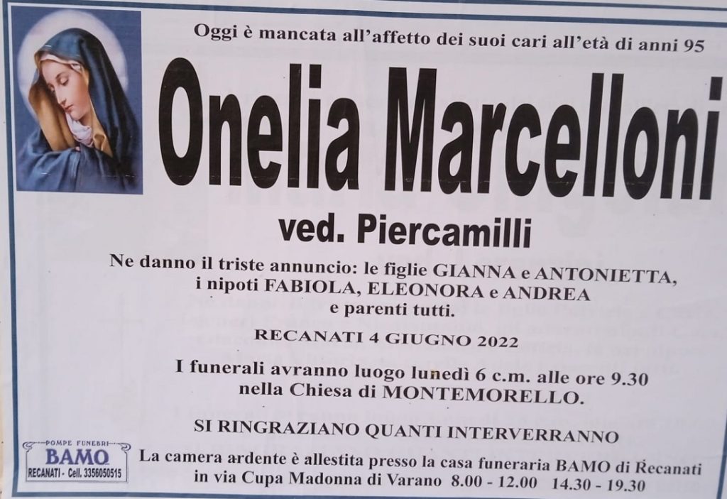E’ morta Onelia Marcelloni ved. Piercamilli