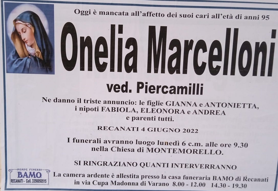Home » E’ morta Onelia Marcelloni ved. Piercamilli