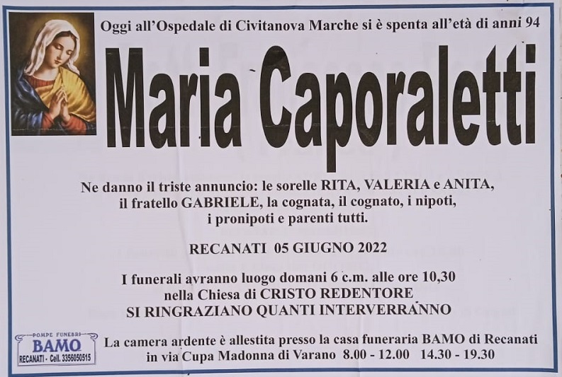 Si è spenta Maria Caporaletti