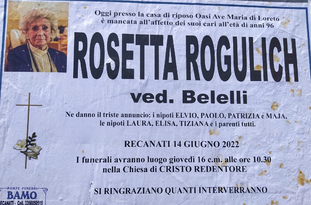 Home » E’ morta Rosetta Rogulich ved. Belelli