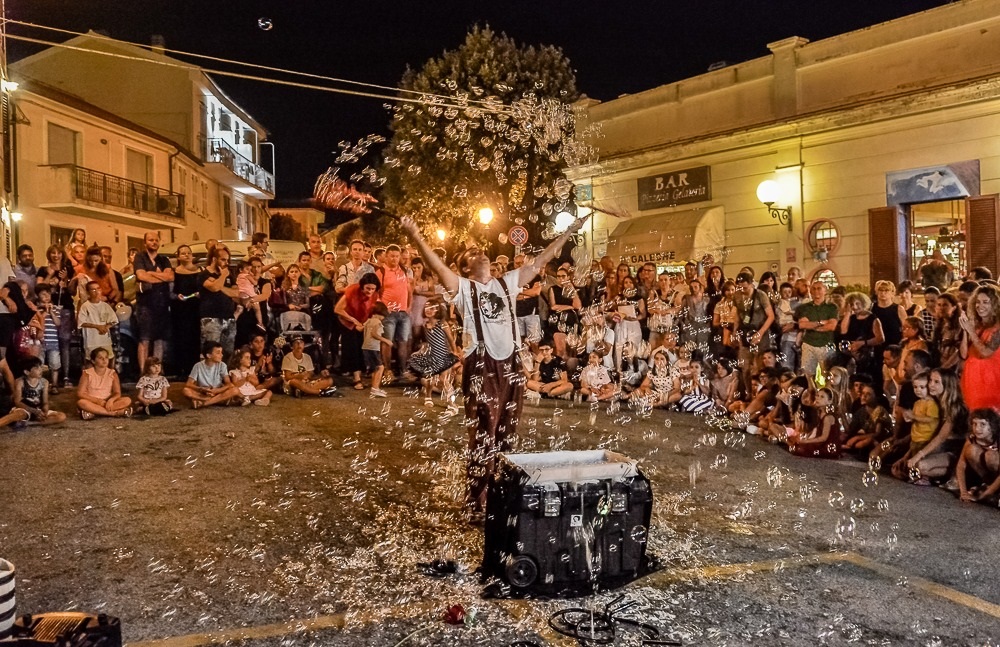 Ancora una volta l’Arte “in strada”, quella accessibile a tutti, non ha mancato di regalare emozioni nella prima tappa di Art Festival 2022, offrendo al pubblico del centro storico di Numana spettacoli itineranti dalle 18.00 alle 24.00. Una serata degna dell’apertura dell’estate numanese, che ha inaugurato ufficialmente il programma estivo con più di centocinquanta eventi. E così i turisti, che hanno fatto registrare già il tutto esaurito, i residenti e il pubblico delle città limitrofe, hanno potuto godere, sullo sfondo di una città tirata a lustro, dei benefici delle arti performative, in un ritrovato “stare insieme” a lungo desiderato. Nei punti nevralgici del centro, gli artisti non hanno mancato di divertire e stupire il pubblico, coinvolgendolo come parte integrante dello spettacolo. Clownerie, bolle di sapone, teatro, acrobazie, equilibrismi, musica, giocoleria, il mix vincente portato in scena da artisti provenienti da tutto il mondo: Alessandro Macchiaiolo, in arte Alesticks, Alessandro De Luca, Andrea Fedi, in arte Katastrofa clown, Gabriela Inés Corbo, in arte Gaby Corbo, Mattia Buonaventura De Minicis, Compagnia Teatro Rebis.