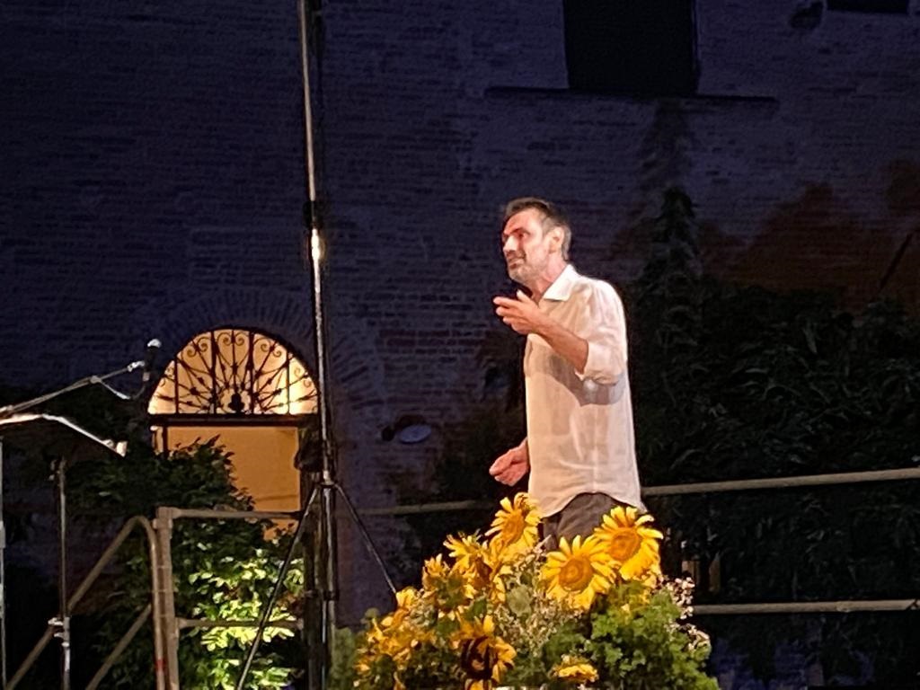 E’ stato infatti l’orto del Colle dell’Infinito a dare le emozioni finali, ambiente suggestivo anche senza ulteriori contenuti, ma ieri sera il recital di un grandissimo Fabrizio Gifuni ha aggiunto ulteriore qualità a beneficio di quanti hanno assistito all’evento che ha messo insieme testi di Pierpaolo Pasolini e di Giacomo Leopardi. «Ho immaginato – ha commentato Gifuni- cinque Pensieri di Giacomo Leopardi, più un brano tratto dal Discorso sopra lo stato presente dei costumi degli italiani, intrecciati a quattro capitoli di Ragazzi di vita – romanzo d’esordio di Pier Paolo Pasolini – e ad alcuni versi del poeta friulano.