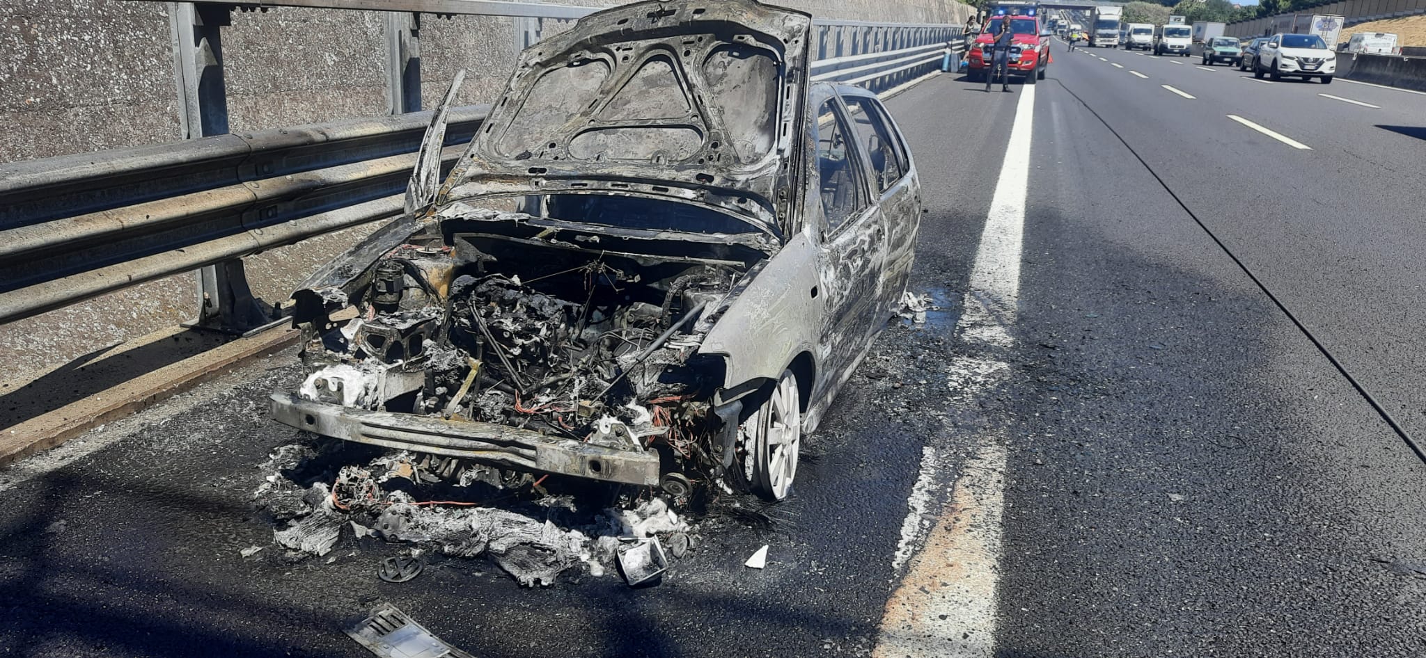 E’ andata letteralmente distrutta una Volkswagen Polo diesel mentre percorreva il tratto della A14 fra Porto Potenza Picena e Civitanova Marche al km 258. A bordo dell’autovettura una ragazza di Bologna che, forse a causa del surriscaldamento del motore, ha notato che la sua autovettura non rispondeva più ai comandi perdendo di potenza, mentre del fumo fuoriusciva dalla parte anteriore del mezzo.