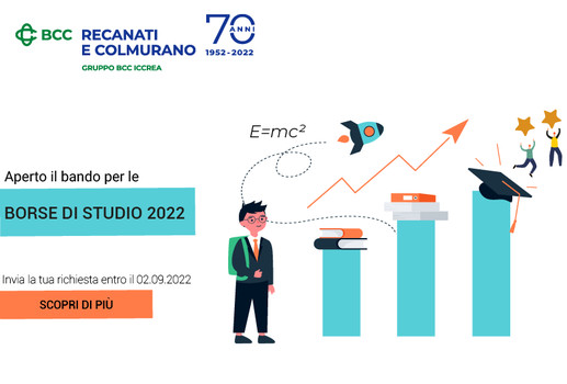 Per celebrare l’anniversario dei 70 anni della Banca di Credito Cooperativo di Recanati e Colmurano, l’Istituto ha presentato il nuovo bando per l’assegnazione di borse di studio a favore dei Soci, dei figli dei soci e dei dipendenti. Un’ iniziativa importante che ha l’obiettivo di sostenere i giovani studenti, promuovendo le eccellenze del territorio ed allo stesso tempo valorizzare la figura del Socio BCC. Gli importi dei premi sono suddivisi in base al titolo di studio conseguito ed al punteggio ottenuto; sono previsti infatti per la scuola secondaria di primo grado: Euro 100 per votazioni pari a 9; Euro 150 per votazione pari a 10 o 10 e lode; per la scuola secondaria di secondo grado: Euro 150 per votazioni da 95 a 100; Euro 200 per votazioni pari a 100 e lode, infine per le lauree triennali, magistrali, specialistiche e a ciclo unico (anno accademico 2020-2021) sono previsti Euro 250 per votazioni da 108 a 110; Euro 300 per votazioni pari a 110 e lode.