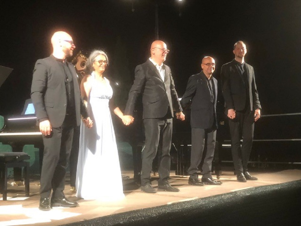 Sul palco l’attore marchigiano Sergio Carlacchiani con «Il mio amatissimo Giacomo» e quattro pianisti campani che hanno dato i colori e le emozioni giusti alle musiche di Bach, Debussy, Brahms, Beethoven, Smetana oltre a brani degli stessi componenti dell’ensemble. Due pianoforti, otto mani per un ensemble- i QuartEight – formato dai pianisti campani Enza De Stefano, Geminiano Mancusi, Lorenzo Fiscella e Giuseppe Giulio Di Lorenzo e Giulio Di Lorenzo che hanno conquistato il pubblico, diverse le sottolineature con applausi a scena aperta. I QuartEight sono orientati da tempo ad indagare il repertorio ad otto mani e impegnati nella produzione di spettacoli frutto di sinergie tra le arti letterarie, figurative e musicali.