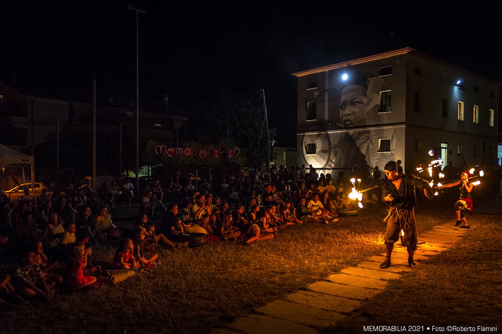 Memorabilia, un festival che preserva il suo forte radicamento territoriale, con la mobilitazione di ragazzi e famiglie, la presenza dei residenti del quartiere che accolgono giovani venuti anche da fuori regione: un festival che rivendica il diritto alla cultura gratuita e lo fa salvaguardando sempre l’incontro e la contaminazione, l’attivazione di energie nuove e l’emancipazione culturale della comunità. Un’utopia? Solo una festa da non perdere in questa calda estate marchigiana.