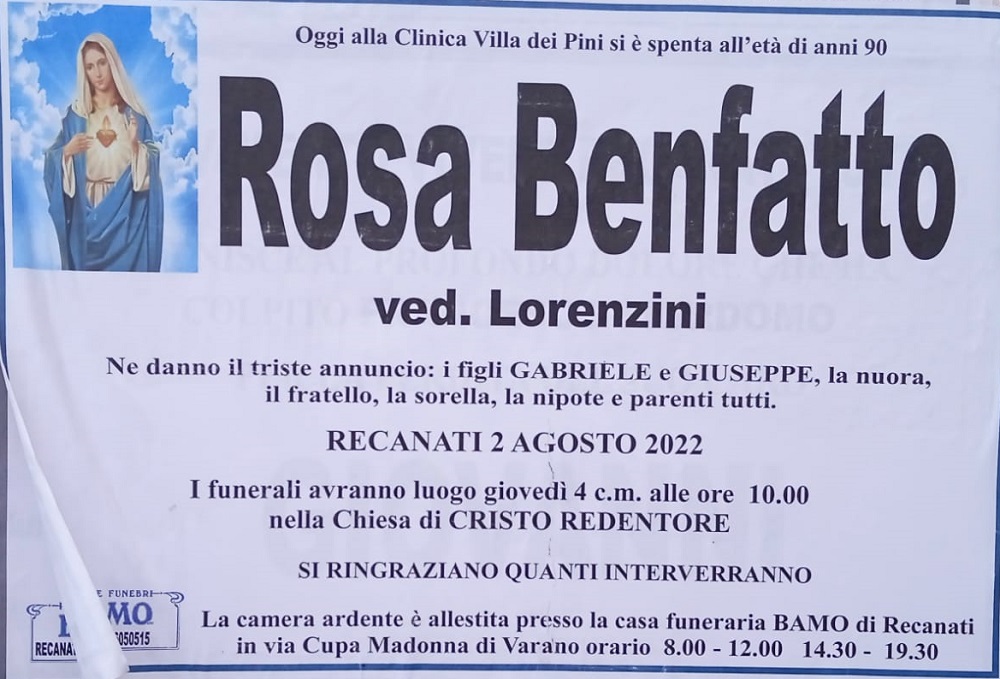 Home » E’ morta Rosa Benfatto ved. Lorenzini