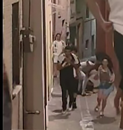 Chiara l’immagine del ragazzo marocchino che, liberatosi dalla morsa del suo aggressore, si tiene dolorante una mano sul petto, all’altezza del cuore, e si allontana dal luogo dell’aggressione. Nella scena compare anche la compagna del gestore che, in preda al panico, accompagna il 22enne, che è riuscito ad alzarsi, a raggiungere a stento il bar dove poi ha ricevuto le prime cure.