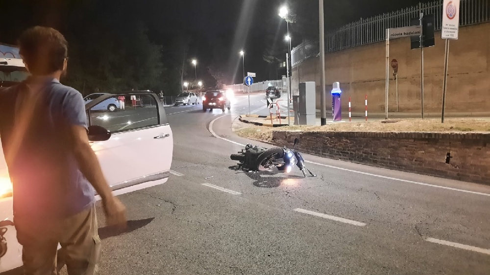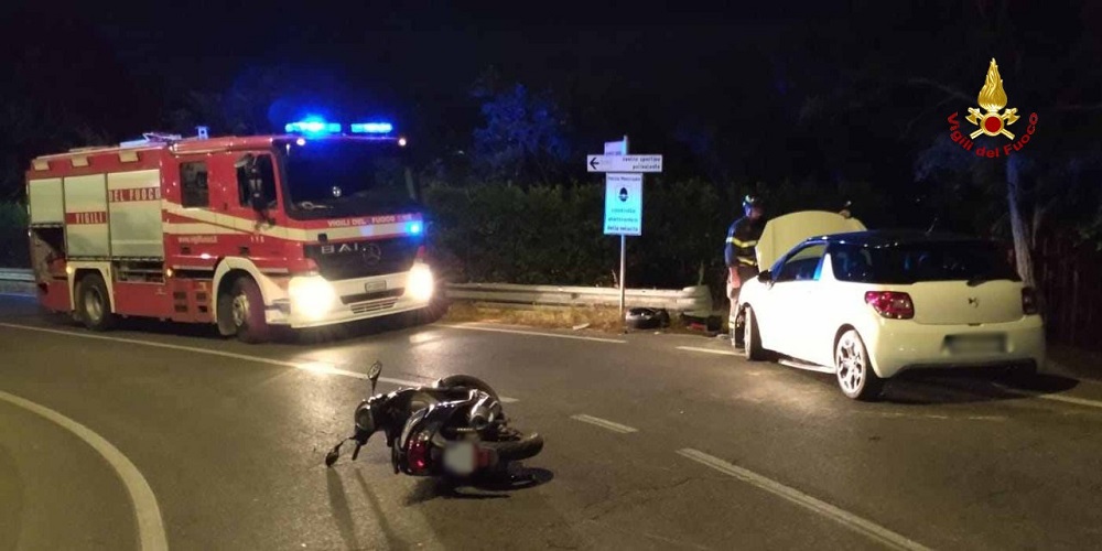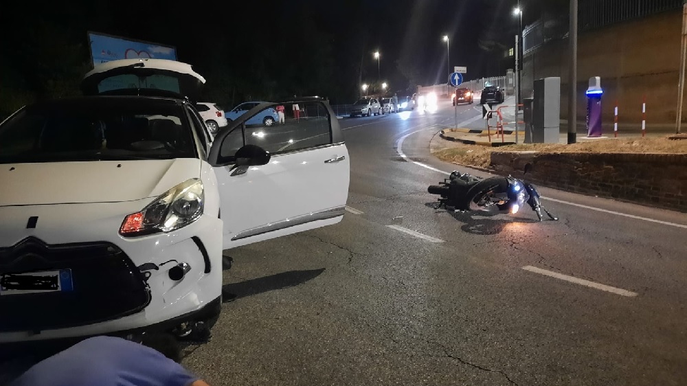 A seguito dell’impatto la persona alla guida dello scooter è finita sotto la vettura rimanendo incastrata. Si tratta di un 22enne di Loreto.