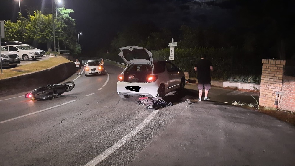A seguito dell’impatto la persona alla guida dello scooter è finita sotto la vettura rimanendo incastrata. Si tratta di un 22enne di Loreto.