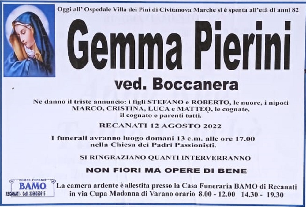 Home » E’ morta Gemma Pierini ved. Boccanera