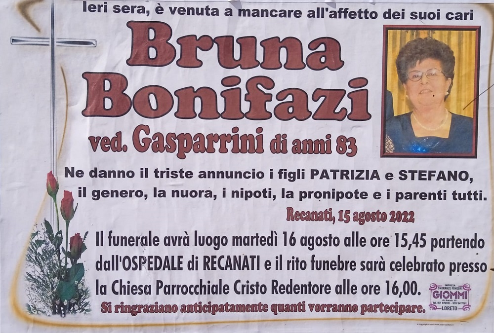 Home » E’ morta Bruna Bonifazi ved. Gasparrini