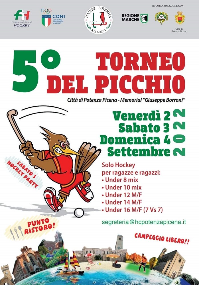 È tutto pronto per il 5° Torneo del Picchio che si svolgerà come ogni anno il fine settimana dal 2 al 4 settembre all’ Hockey Stadio di Potenza Picena. L’evento, organizzato dall’ASD Hockey Potentia con il patrocinio dell’Amministrazione Comunale di Potenza Picena, segna l’avvio della nuova stagione hockeistica e vedrà scendere in campo squadre di Hockey su Prato provenienti da tutta Italia: ragazzine e ragazzini dagli otto ai sedici anni si contenderanno l’ambito trofeo.