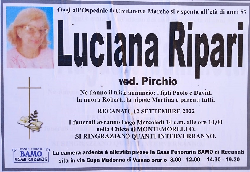 Home » E’ deceduta Luciana Ripari ved Pirchio