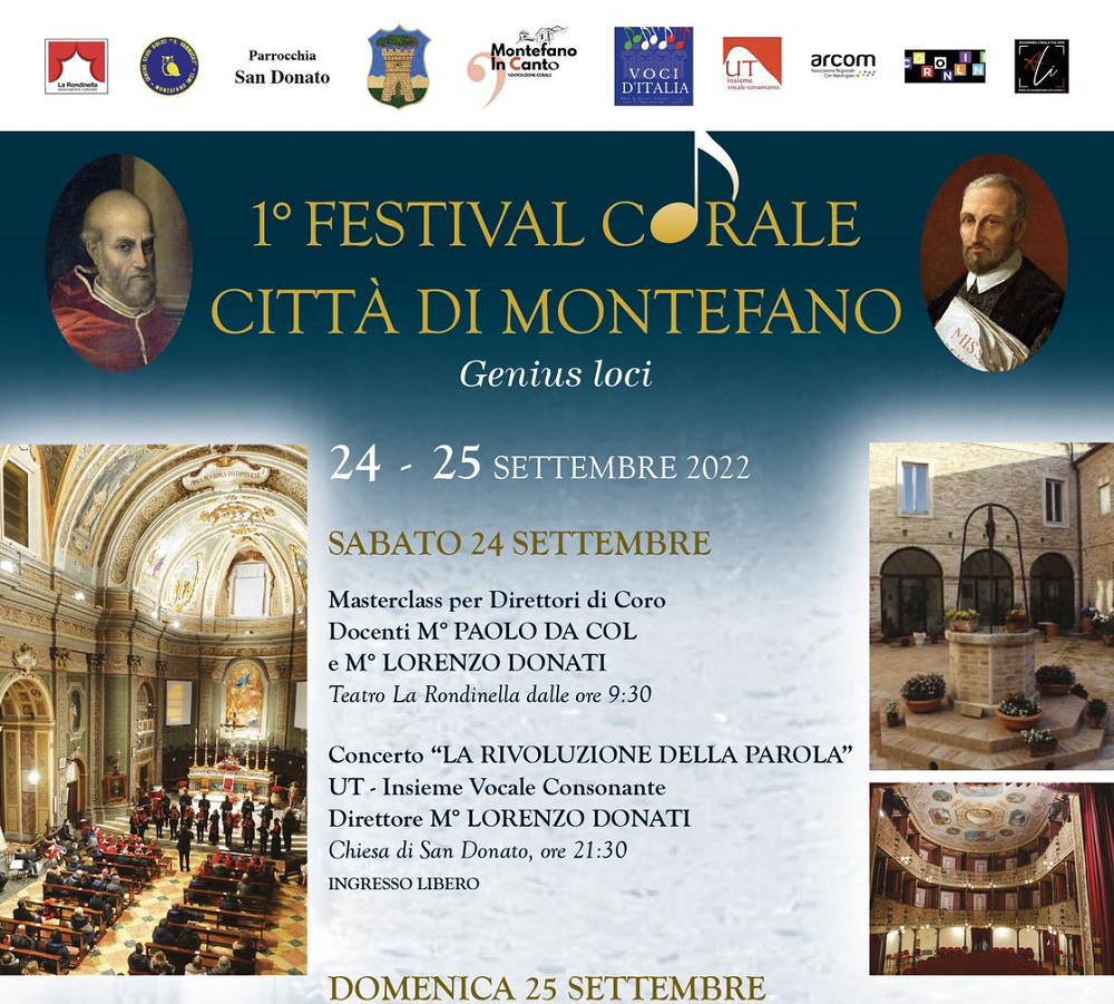 L’evento organizzato dall’Associazione Corale “Montefano in Canto” in collaborazione con A.R.Co.M. (Associazione Regionale Cori delle Marche), Voci d’Italia, Accademia Corale Italiana, Associazione Teatro “La Rondinella” e Comune di Montefano, propone una serie di Concerti, una Conferenza e una Masterclass di perfezionamento rivolta alla figura specifica del Direttore di Coro.
