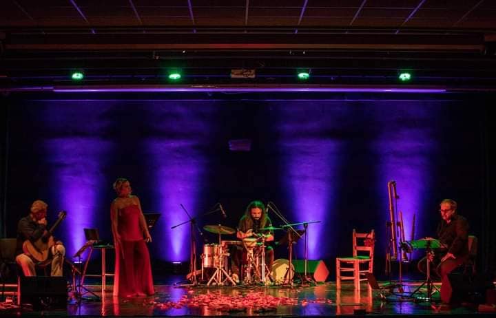 Un incontro tra la narrazione poetica, interpretata magistralmente dalla Donadio, che spazia da Sofocle a Patroni Griffi, da Lorca a Moscato, con le suggestioni delle percussioni mediterranee di Savoretti, dei flauti etnici di Mario Crispi e delle chitarre di Giovanni Seneca.