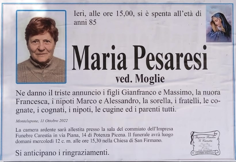Home » Si è spenta Maria Pesaresi ved Moglie