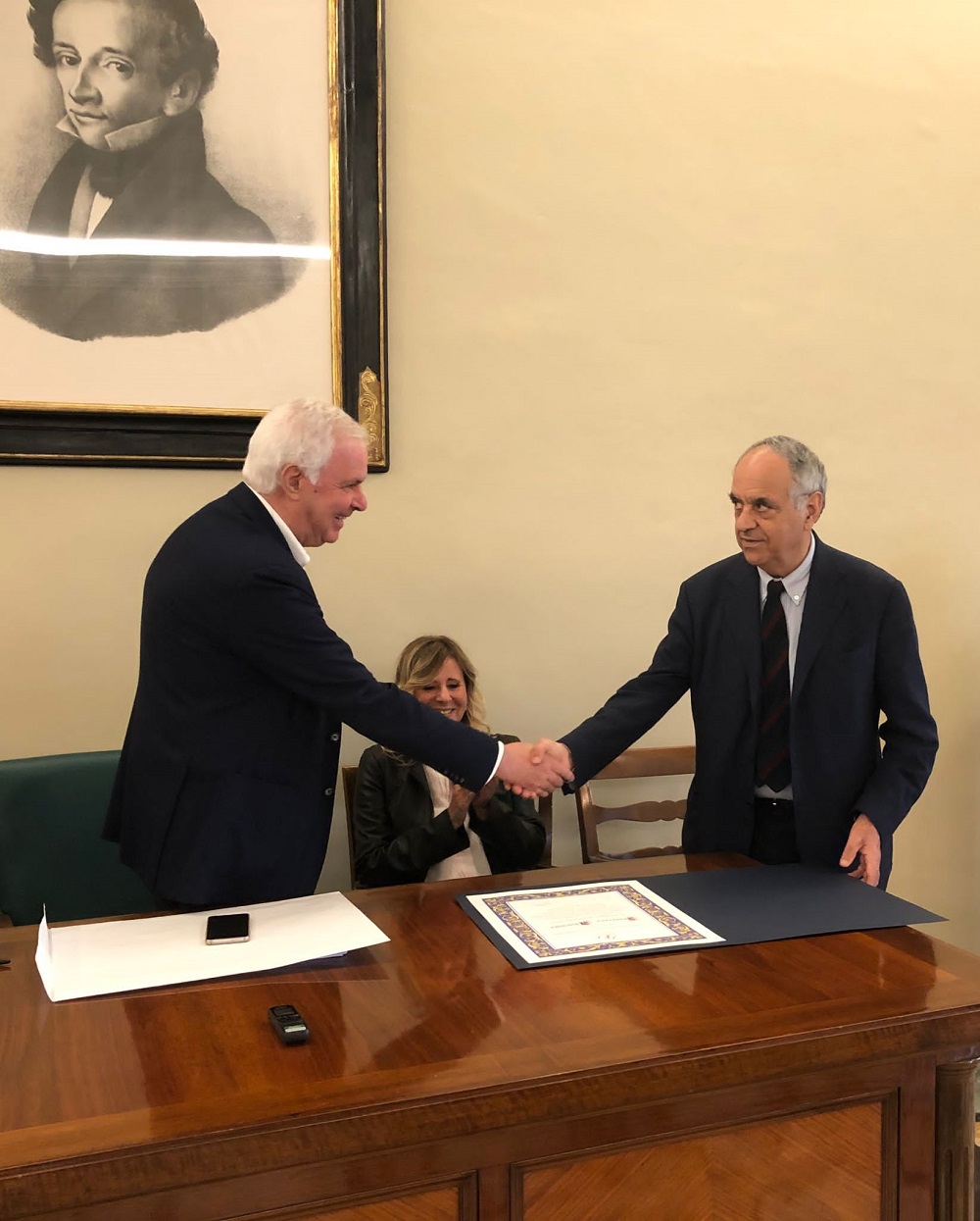 Nelle foto il Presidente del CNSL Fabio Corvatta consegna l’attestato al Rettore Francesco Adornato