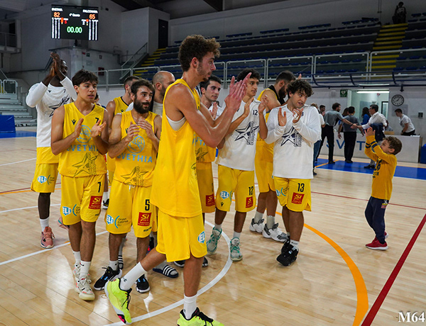 SPOLETO – Tre su tre per la Svethia Recanati che torna vittoriosa dalla trasferta umbra di Spoleto. Al PalaRota finisce 44-63 per Sabbatini e compagni che restano così a punteggio pieno in testa alla classifica in coabitazione con Urbania e Perugia. Gialloblu con le rotazione ridotte all’osso a causa degli infortuni di Andreani, Monteriu e Ndzie ma con la capacità di saper soffrire per poi allungare e controllare nel finale. La difesa 3-2 ordinata da coach Padovano per gli interi quaranta minuti dà i suoi frutti fin dall’inizio quando la Svethia non salendo mai sopra i dieci punti di vantaggio fa comunque capire ai padroni di casa che trovare la via del canestro sarà particolarmente complicato. Alla prima sirena il tabellone dice 8-16, canovaccio invariato nei secondi dieci minuti con i leopardiani che non riescono ad azzannare il match chiudendo all’intervallo sul +7 (25-32). Al ritorno dagli spogliatoi si scatena Chiorri, tre triple e vantaggio Svethia che schizza immediatamente in doppia cifra. Spoleto non ci crede più e gli ultimi minuti servono solo ad assestare il risultato finale. Vince Recanati 44-63: un Chiorri super nella seconda parte di gara, Magrini e Cimini sugli scudi e Naspi sacrificato da playmaker hanno regalato un successo assolutamente non scontato alla vigilia.