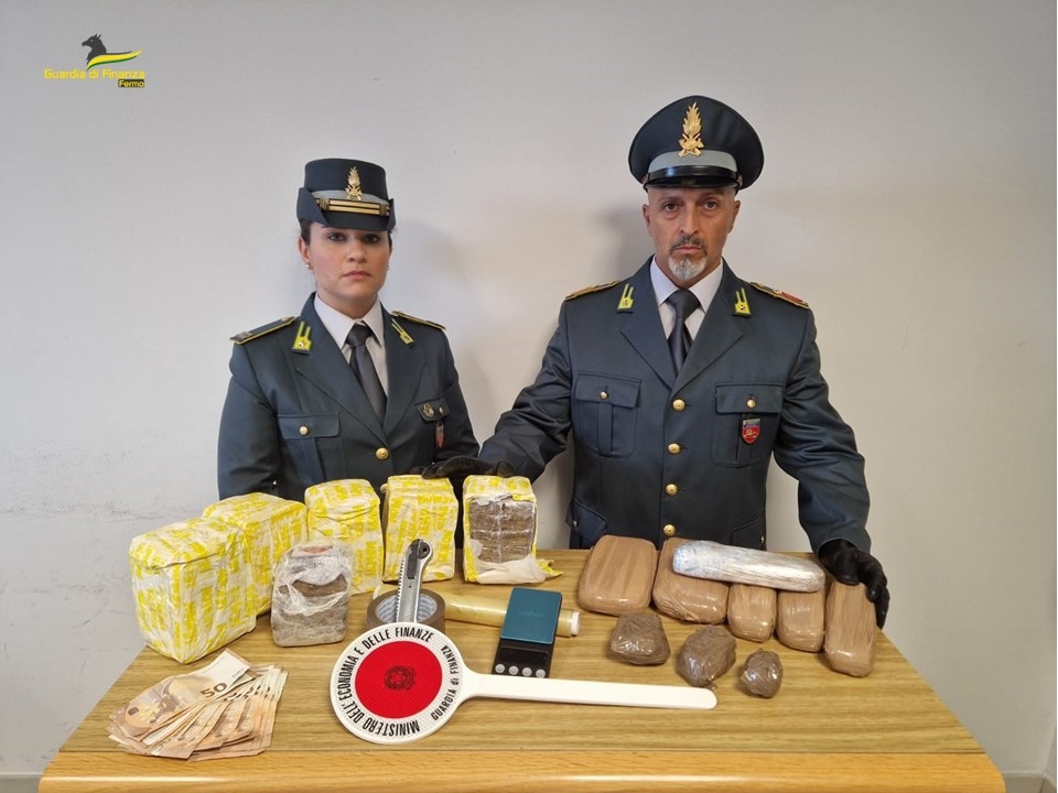 Nel corso di un servizio a contrasto del traffico di sostanze stupefacenti, i militari della Guardia di Finanza di Fermo, in Porto San Giorgio (FM), nella serata di giovedì 20 ottobre, hanno sottoposto a controllo un uomo e una donna, di nazionalità albanese, di circa 40 anni.