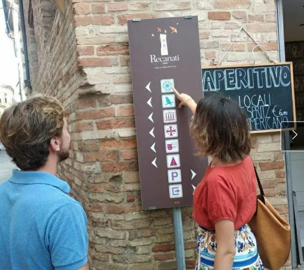 La nuova segnaletica turistica di Recanati rappresenta un’efficace modalità per valorizzare il patrimonio culturale ed ambientale della città dell’Infinito, un biglietto da visita importante per comunicare ai numerosi visitatori e turisti che ogni anno si riversano nelle piazze e nelle vie di Recanati, ma anche un ottimo mezzo per promuovere i luoghi stessi.