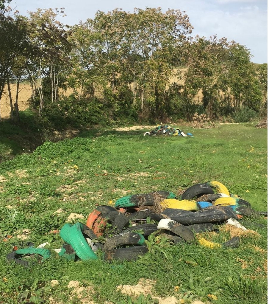É pervenuta, al “NOSTRO” comitato, una precisa indicazione da parte di un gruppo di cacciatori, che percorrendo un “fosso” in contrada Saletta, le cui acque affluiscono nel torrente Monocchia in territorio recanatese, hanno individuato 2 grossi cumuli di pneumatici abbandonati, classificabili, in gergo tecnico, come rifiuti speciali.