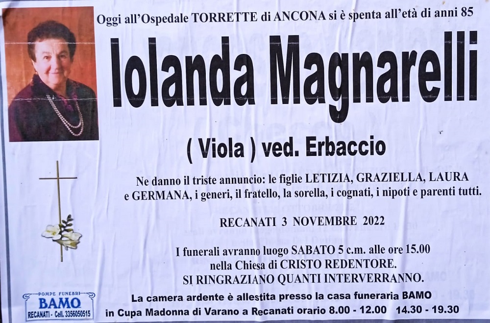 E’ morta Iolanda (Viola) Magnarelli ved. Erbaccio