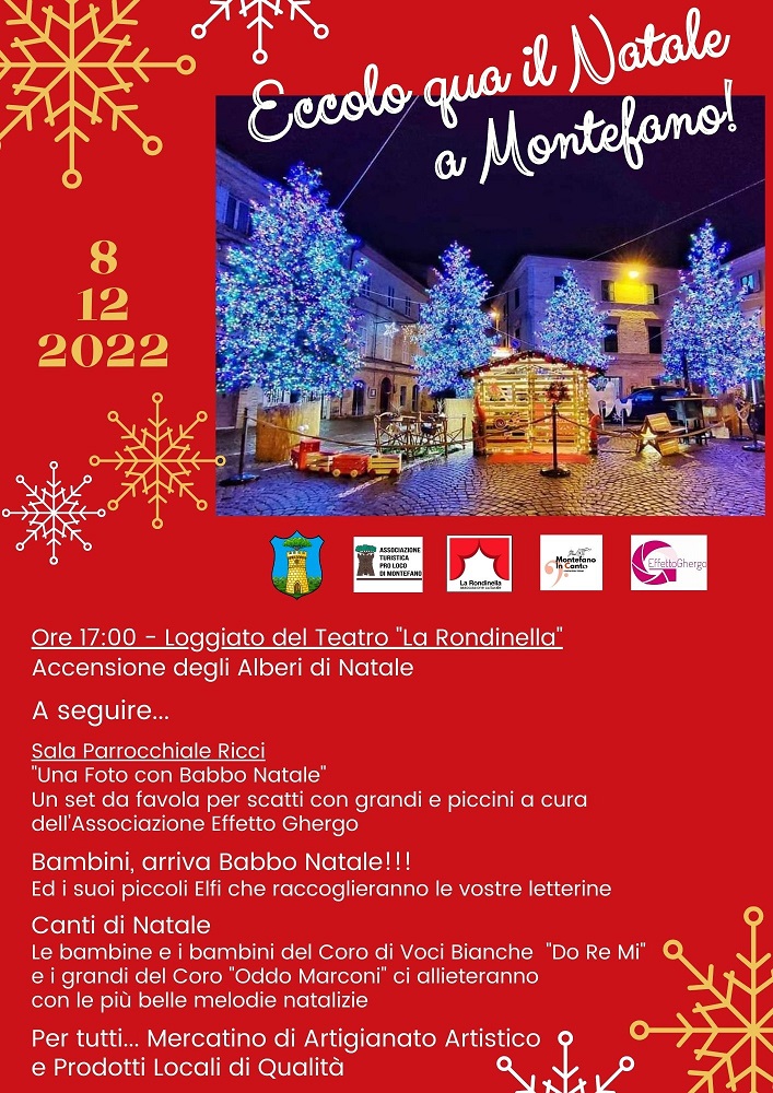 Il Sindaco Barbieri “Nonostante tutte le difficoltà e la crisi energetica ed economica che incombe – motivo per cui abbiamo evitato di installare le consuete luminarie nelle vie – abbiamo voluto comunque illuminare la nostra cittadina con gli Alberi di Natale, con l’augurio che siano festività natalizie di pace e serenità per tutti. L’Amministrazione Comunale ringrazia tutti i volontari che, come ogni anno, hanno lavorato per vestire a festa Montefano, affinché risplenda da domani fino al nuovo Anno”.