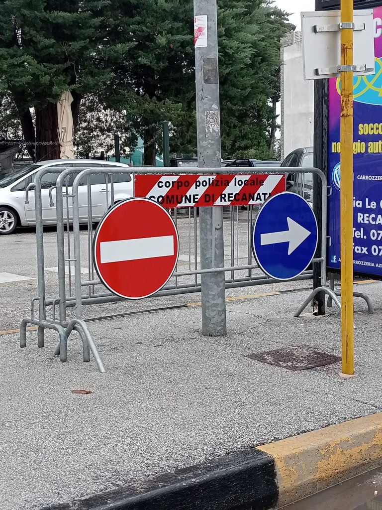 Per il recanatese “ai tanti segnali abbattuti e non ripristinati, ora vengono aggiunti quelli fuorilegge applicati su nuove, ma anche su vecchie transenne non più a norma, posizionate su marciapiedi, su strada. Pericolose queste ultime poiché in caso di forte vento potrebbero diventare pesanti proiettili che potrebbero colpire mezzi e persone. Sono disseminate a decine e decine in tutto il territorio. Ora, con la novità delle partite della squadra di calcio della Recanatese in C, ne hanno disseminate numerosissime nel circondario dello stadio Tubaldi”.