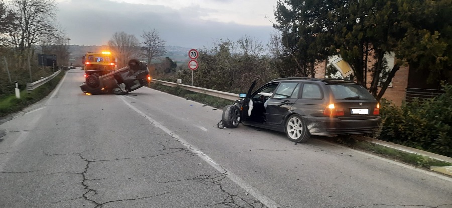 Brutto incidente oggi pomeriggio al bivio della provinciale Regina con la strada che conduce a Montelupone, in zona Becerica. Una Panda, condotta da un uomo con a bordo, lato passeggeri, una donna, proveniente dall’arteria secondaria, giunta allo stop ha iniziato a girare a sinistra per immettersi, in direzione monti, nella provinciale Regina. In quel momento sopraggiungeva dalla sua sinistra, direzione mare, una Bmw condotta da un civitanovese che ha centrato in pieno la Panda facendola cappottare.