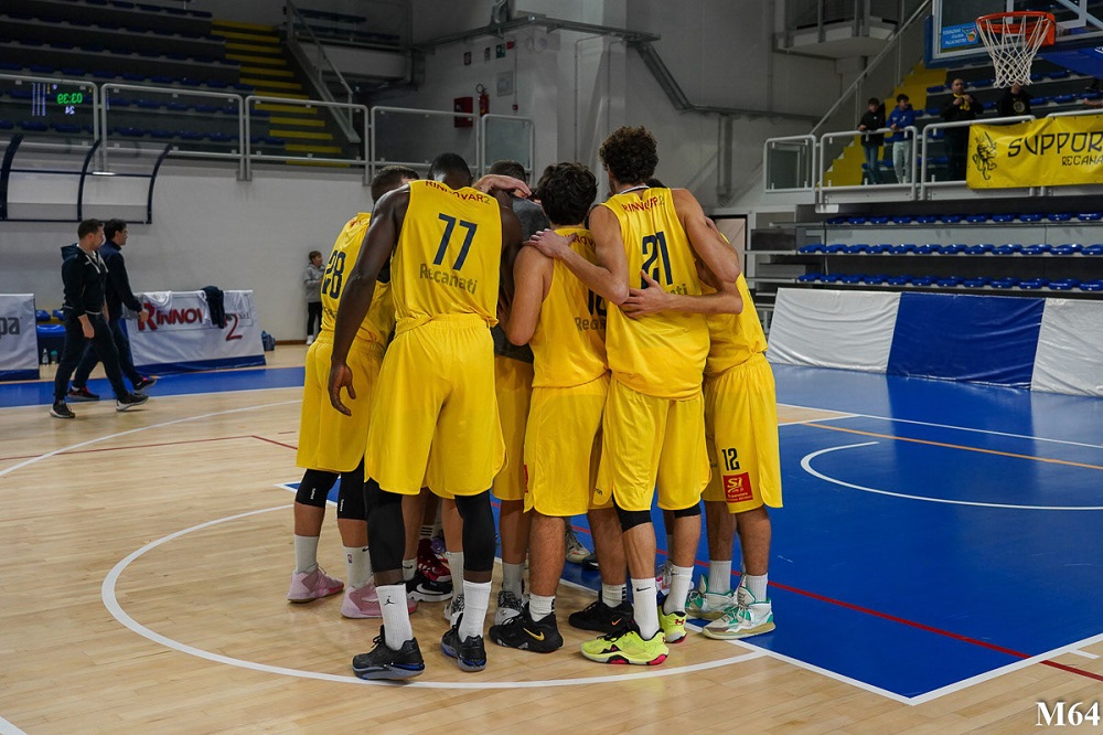 RECANATI – Si chiude con una sconfitta il 2022 della Svethia Recanati che al PalaCingolani-Pierini viene superata 67-86 dalla lanciatissima Loreto Pesaro. Per la prima volta dall’inizio della stagione i gialloblu sono fuori dalla prime sei posizioni che valgono l’accesso diretto alla C Unica 2023-2024, la sosta servirà ora a recuperare uomini e forze utili ad un girone di ritorno dove bisognerà indubbiamente invertire la rotta. Davanti al solito numerosissimo e caloroso pubblico dell’impianto di Via F.lli Farina la Svethia parte male: Benevelli è scatenato e con tre triple consecutive dà il primo vantaggio in doppia cifra ai suoi già dopo poco più di tre minuti mentre sponda Recanati con Magrini out e Sabbatini acciaccato è Naspi ad impattare meglio sul match. Alla prima sirena Pesaro conduce 19-25 con i leopardiani che quantomeno provano a restare in scia.
