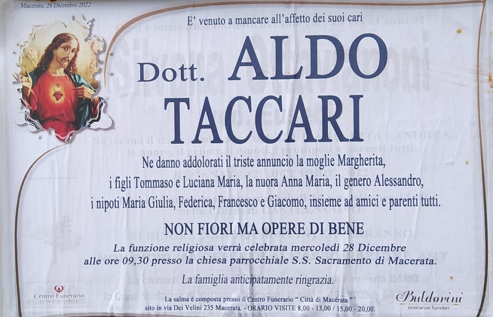 E’ morto il dott. Aldo Taccari